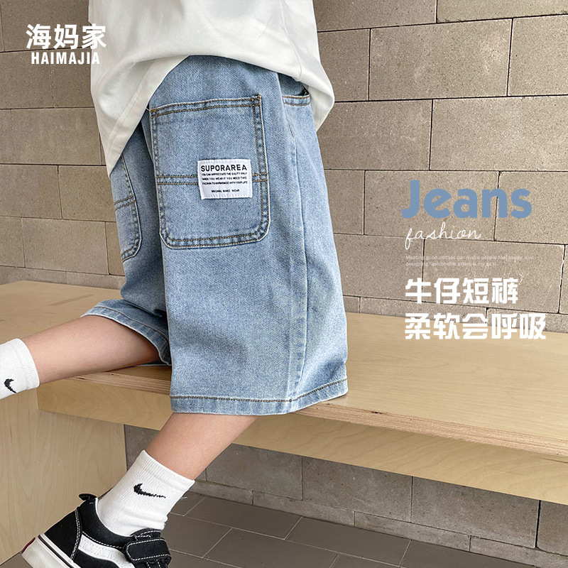 السراويل الخامسة للأولاد 2024 سراويل جينز هايما الصيفية الجديدة للأطفال على الطراز الكوري سراويل متوسطة السراويل الخفيفة