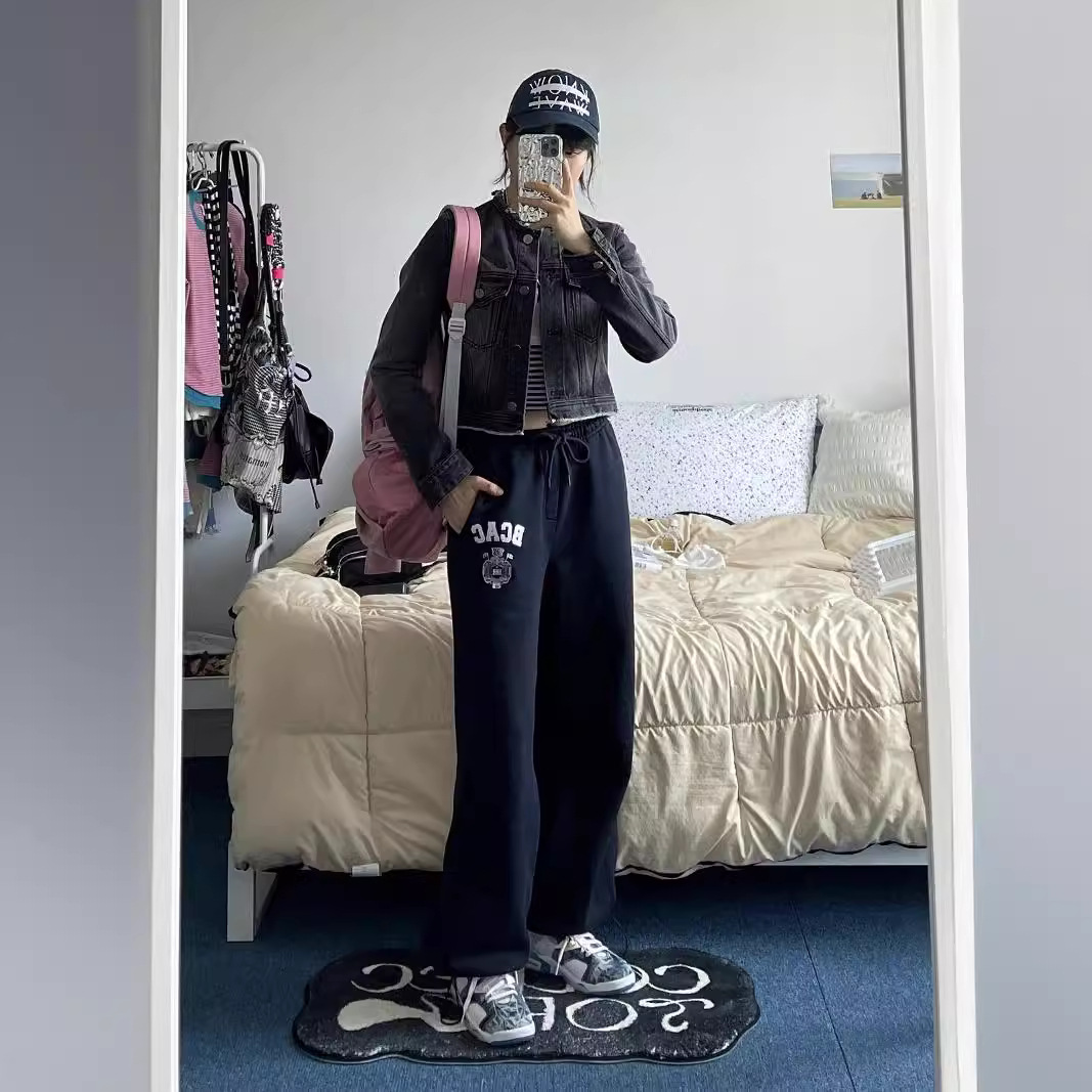 (تخفيضات خاصة) بنطال رياضي قطني مستقيم مطرز بحروف شعار Badblood، بنطال رياضي فضفاض غير رسمي