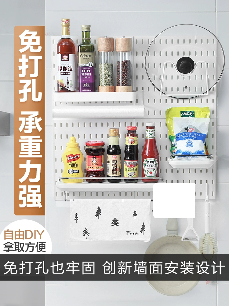 إعداد لوحة الكهف رف حرة اللكم التسكع الملحقات الملحقات المطبخ موابل الجدار البلاستيك التجميل تخزين الجدار رف أداة