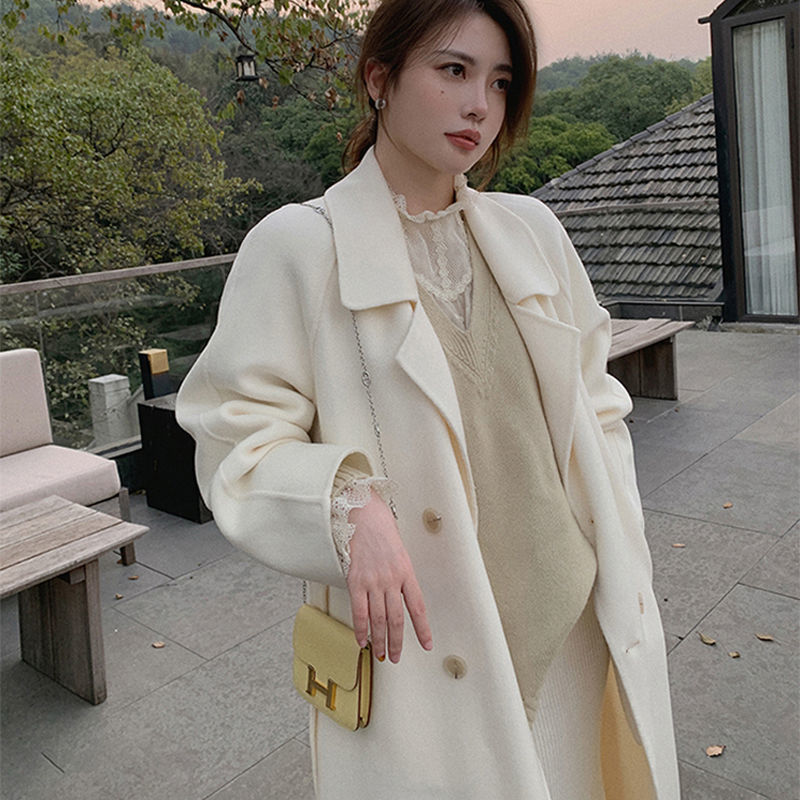 جديد لخريف وشتاء 2024 معطف صوفي متوسط الطول على الوجهين معطف صوفي كوري سميك عالي الجودة للرجال الصغار