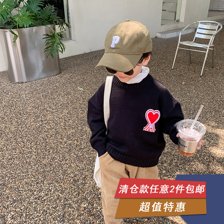 [بيع التصفية] سترة سميكة للأطفال للبنين والبنات طفل صوف الأغنام الحب محبوك البلوز المد