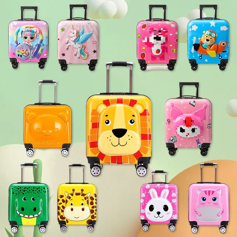 حقيبة أمتعة للأطفال مقاس 18 بوصة باللون الأصفر للرجال تحمل شعار كرتوني حقيبة سفر بعجلات عالمية وحقيبة هدايا لطلاب المدارس الابتدائية