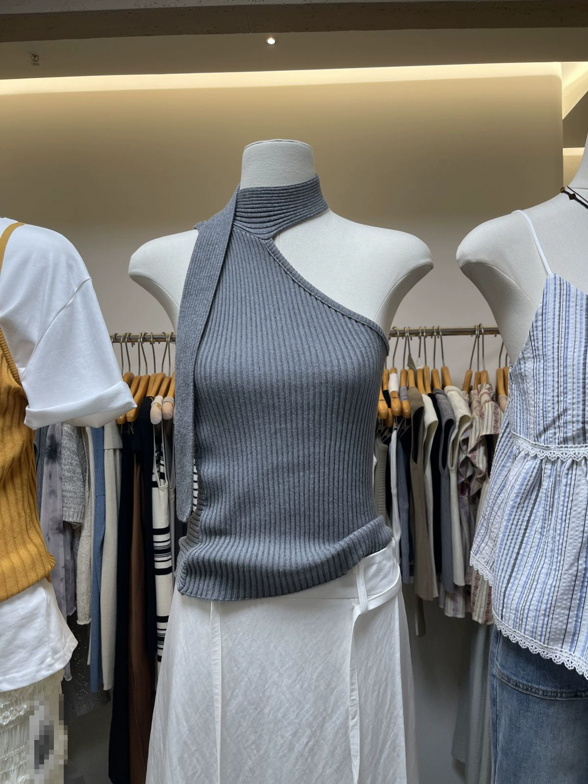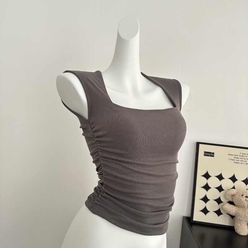 تي شيرت Taozi محلي الصنع للفتيات على طراز Yuanying 2024 ربيعي رقيق الظهر ورقيق للرجال كتف نحيف ورقبة مربعة نحيفة