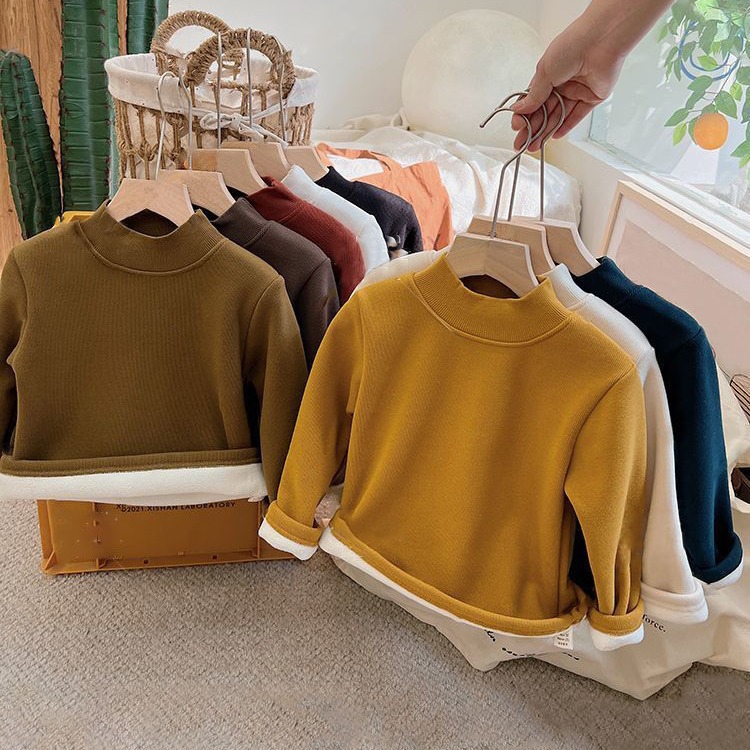 [شحن مجاني] قميص للأطفال نصف الياقة المدورة مبطن بالصوف للخريف والشتاء على الطراز الكوري للرجال والنساء قطعة واحدة من المخمل الدافئ