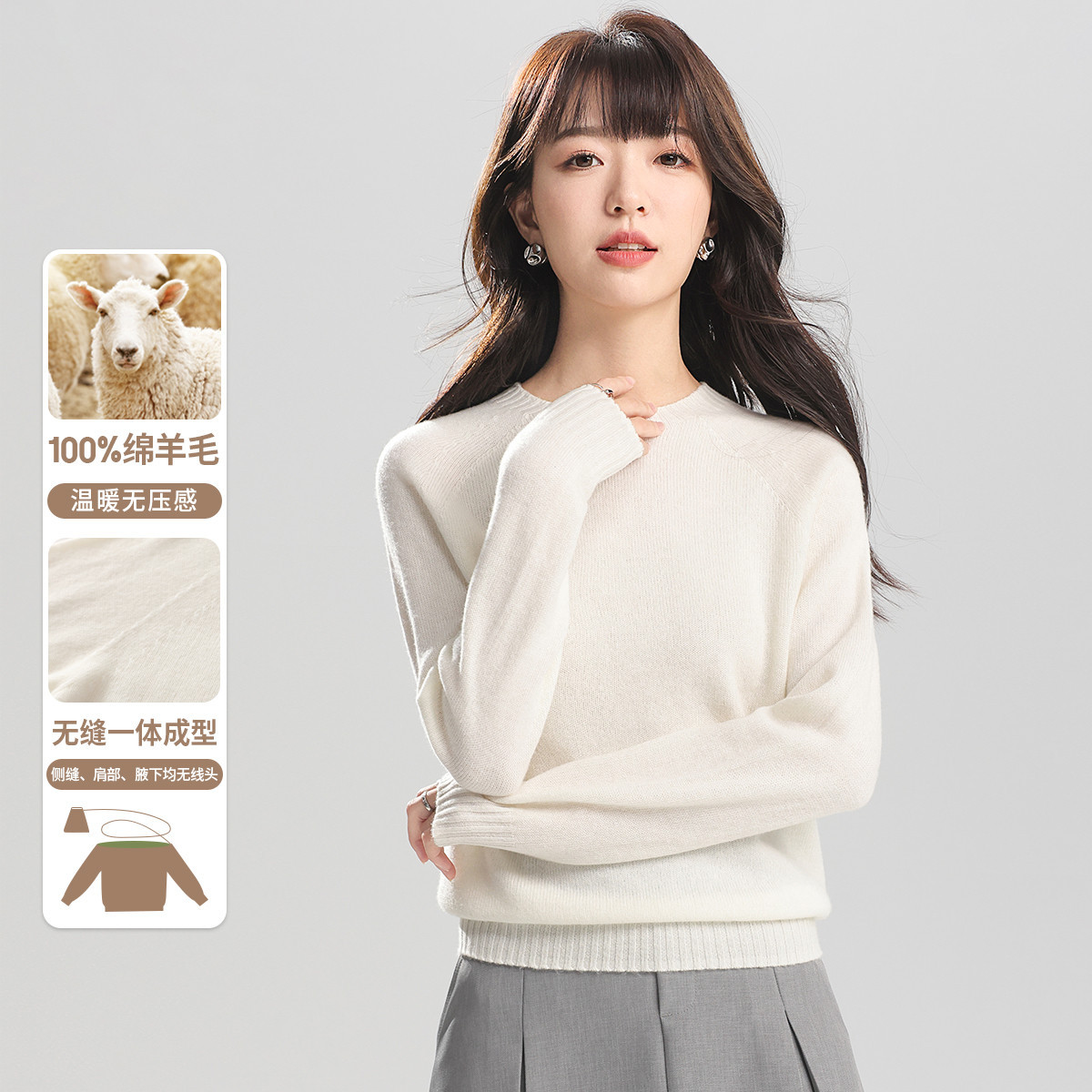 سترة صوف كاملة بدون خياطة للنساء برقبة دائرية بلون كشمير صوف 100 سترة صوف نقية للنساء