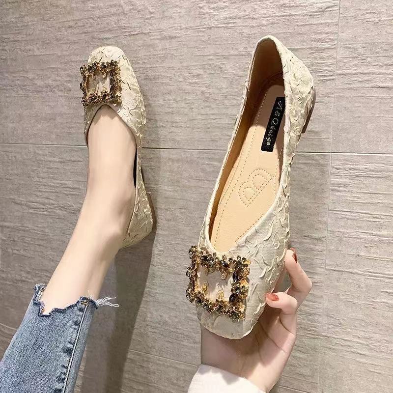حذاء خارجي مسطح بمقدمة مربعة نصف سحب من حجر الراين