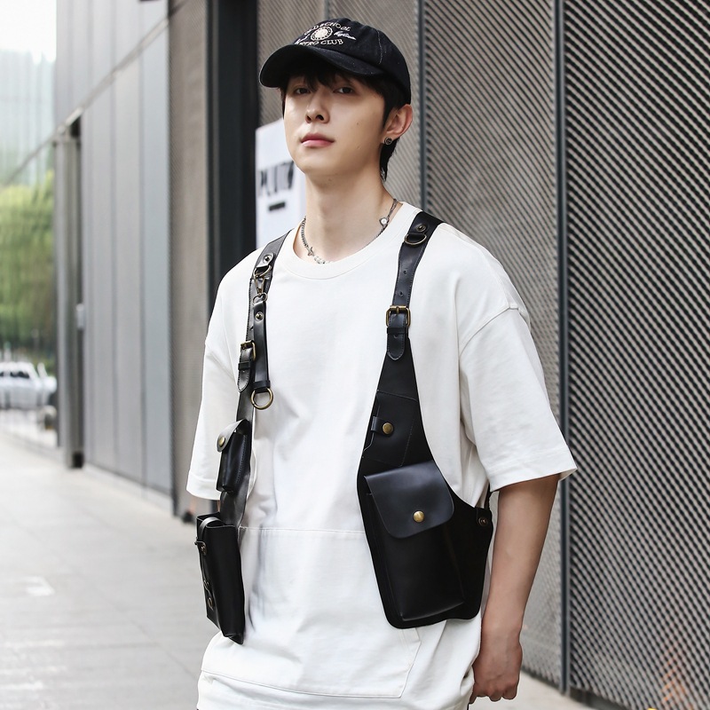 2023 جديد خمر حزام تحت الإبط حقيبة دراجة نارية في الهواء الطلق عادية كل مباراة الأدوات الكورية ins حقيبة الهاتف المحمول للرجال