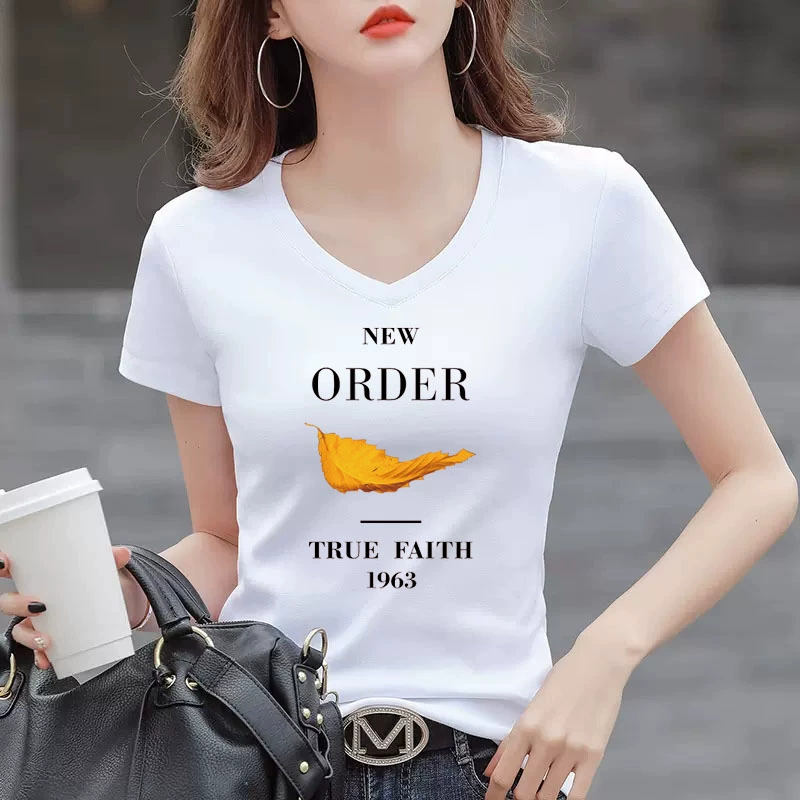 V-neck قصيرة الأكمام 2024 الصيف تي شيرت أبيض نحيف جديد