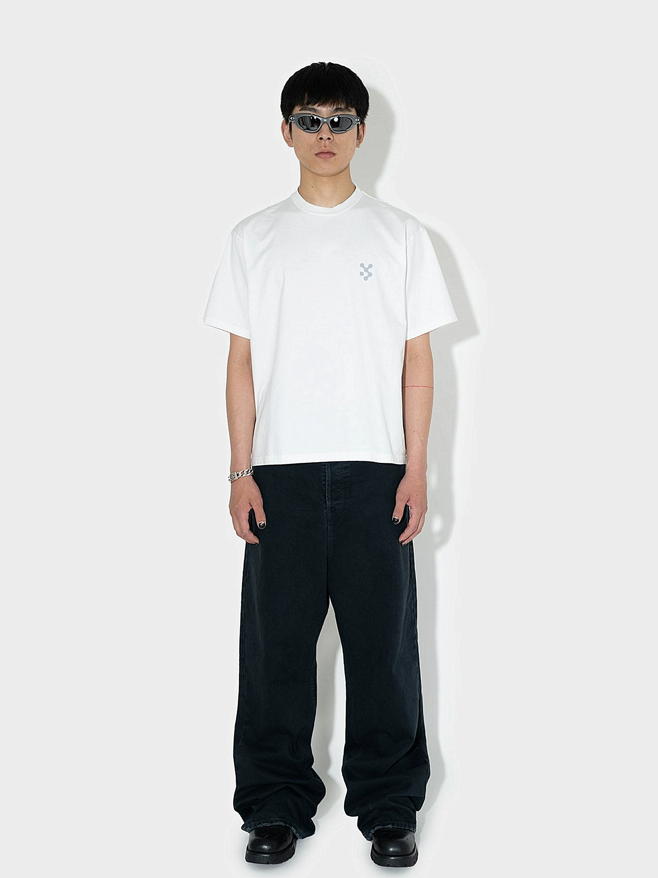 رقبة دائرية مطبوعة للشباب باللونين الأسود والأبيض وأكمام قصيرة