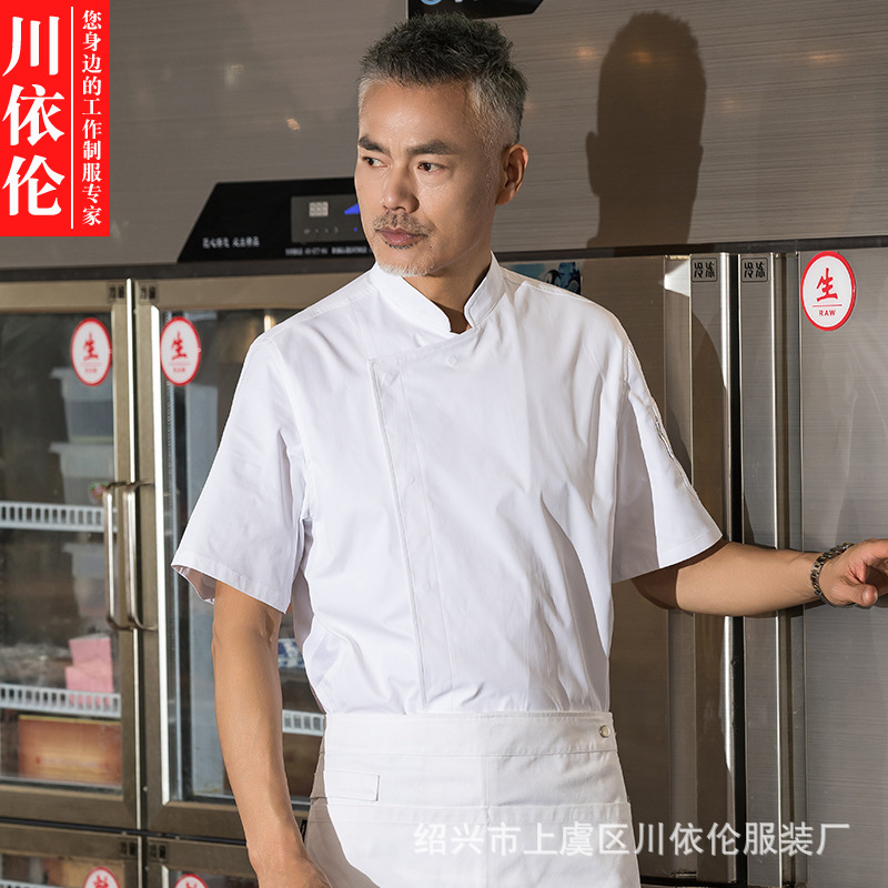 ملابس الشيف بأكمام قصيرة صيفية رقيقة للمطاعم والمطاعم الغربية ملابس عمل للطهاة المطبخ للرجال قابلة للتنفس نصف كم