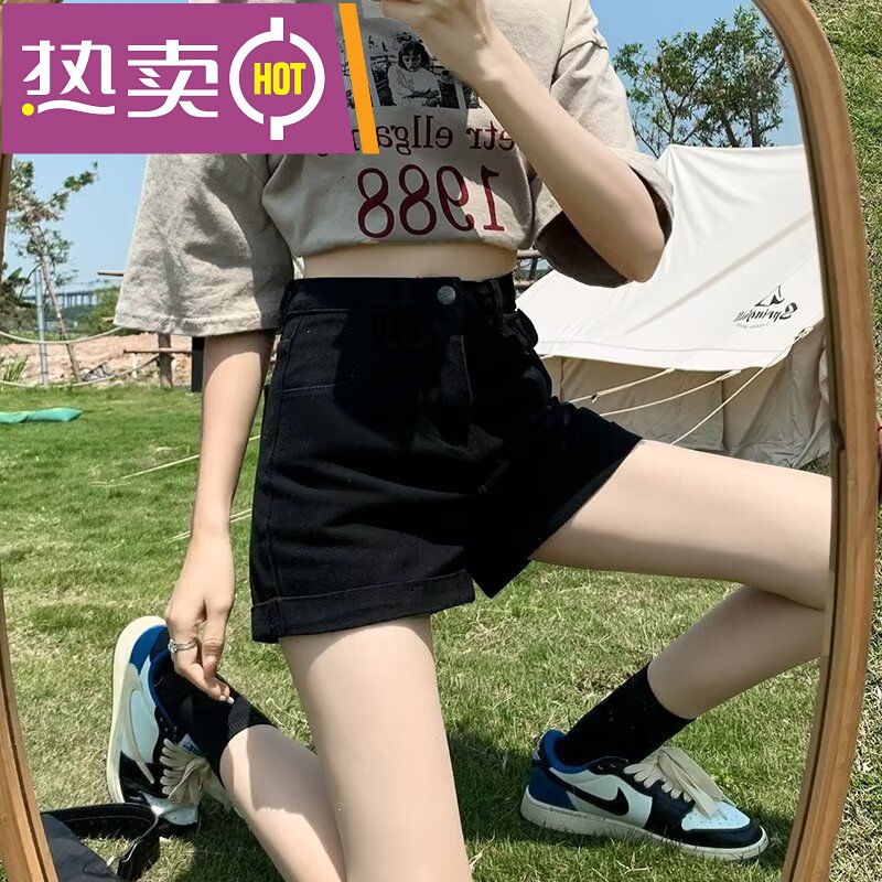 شورت دينم أسود للنساء لصيف 2024 وصل حديثًا سراويل عالية الخصر للتخسيس فضفاضة بكلمة A سراويل قصيرة للغاية وساخنة