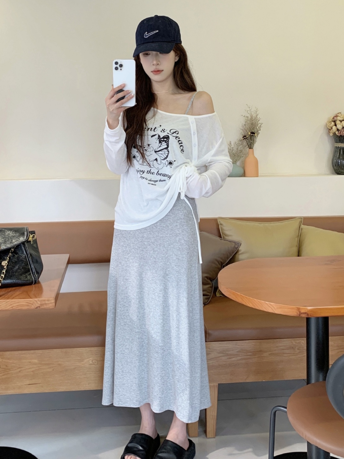 بلوزة على شكل كمثرى، بأكمام طويلة، تي شيرت