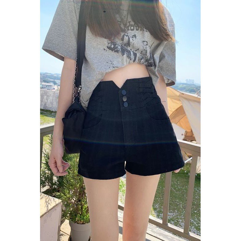 ثلاثة عشر خط أسود الدنيم السراويل النسائية الصيف 2024 جديد سوبر عالية الخصر مطاطا سليم صالح التخسيس كل مباراة واسعة الساق الساخن