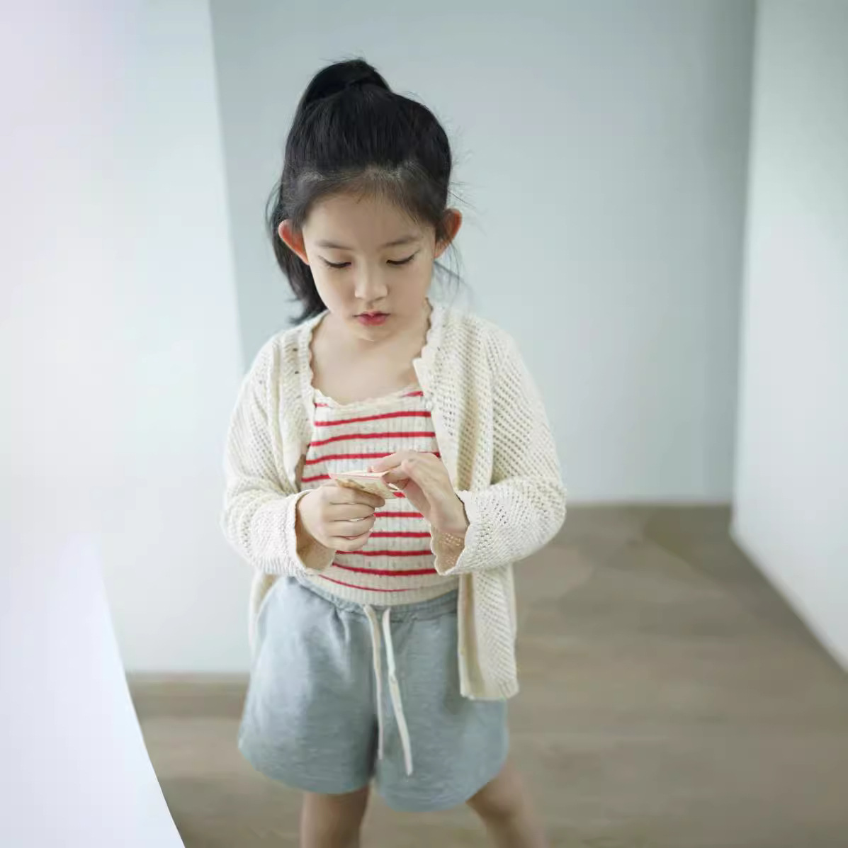 [بقعة] 2023 ملابس أطفال للربيع والصيف جديدة من القطن بلون المشمش سترة محبوكة بخطاف يدوي صناعة ثقيلة رائعة