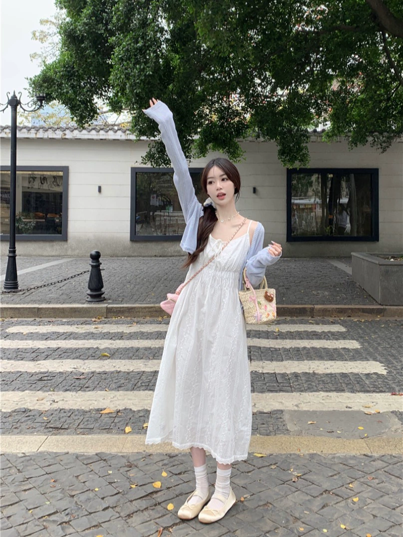 لطيف الحب الأول الصيف فستان الدانتيل الفرنسي الحمالة