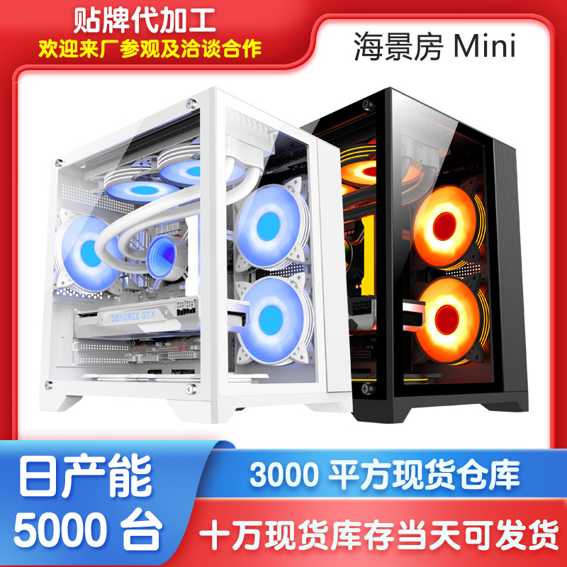 حافظة كمبيوتر صغيرة لغرفة عرض البحر عبر الحدود سطح المكتب جانب بانورامي شفاف لعبة رياضية إلكترونية M-ATX حافظة مبردة بالماء