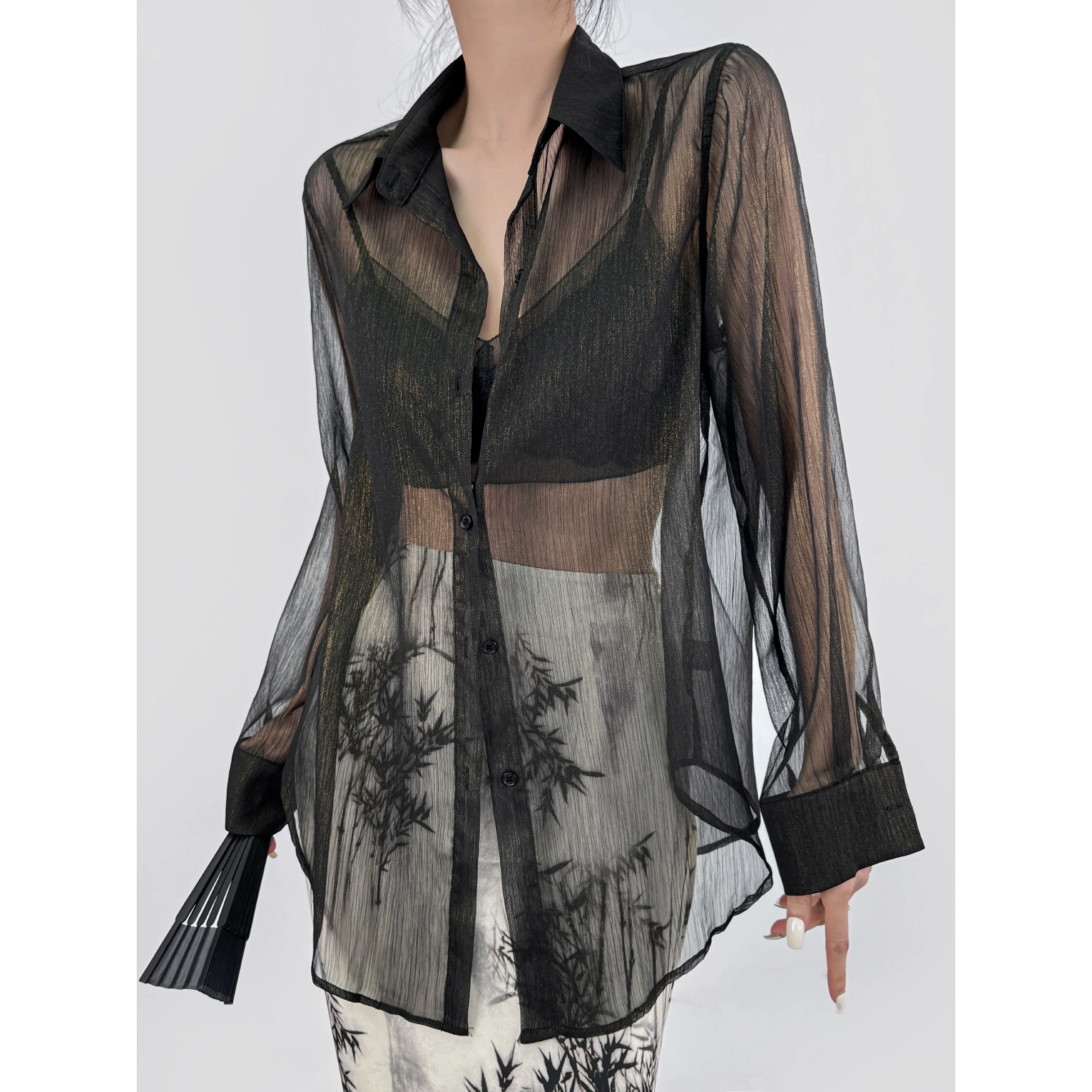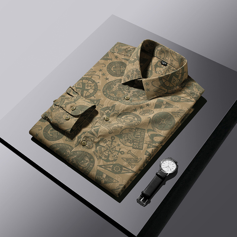 [جيل من الشعر] قميص طويل الأكمام ذو طباعة رقمية عالية الجودة ومقاوم للتجاعيد