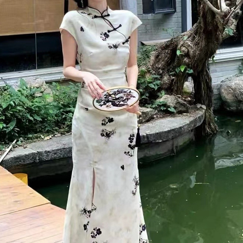[شهر خط الشاي البارد] شيونغسام على الطراز الصيني الجديد للربيع والصيف مع إبزيم وياقة عمودية