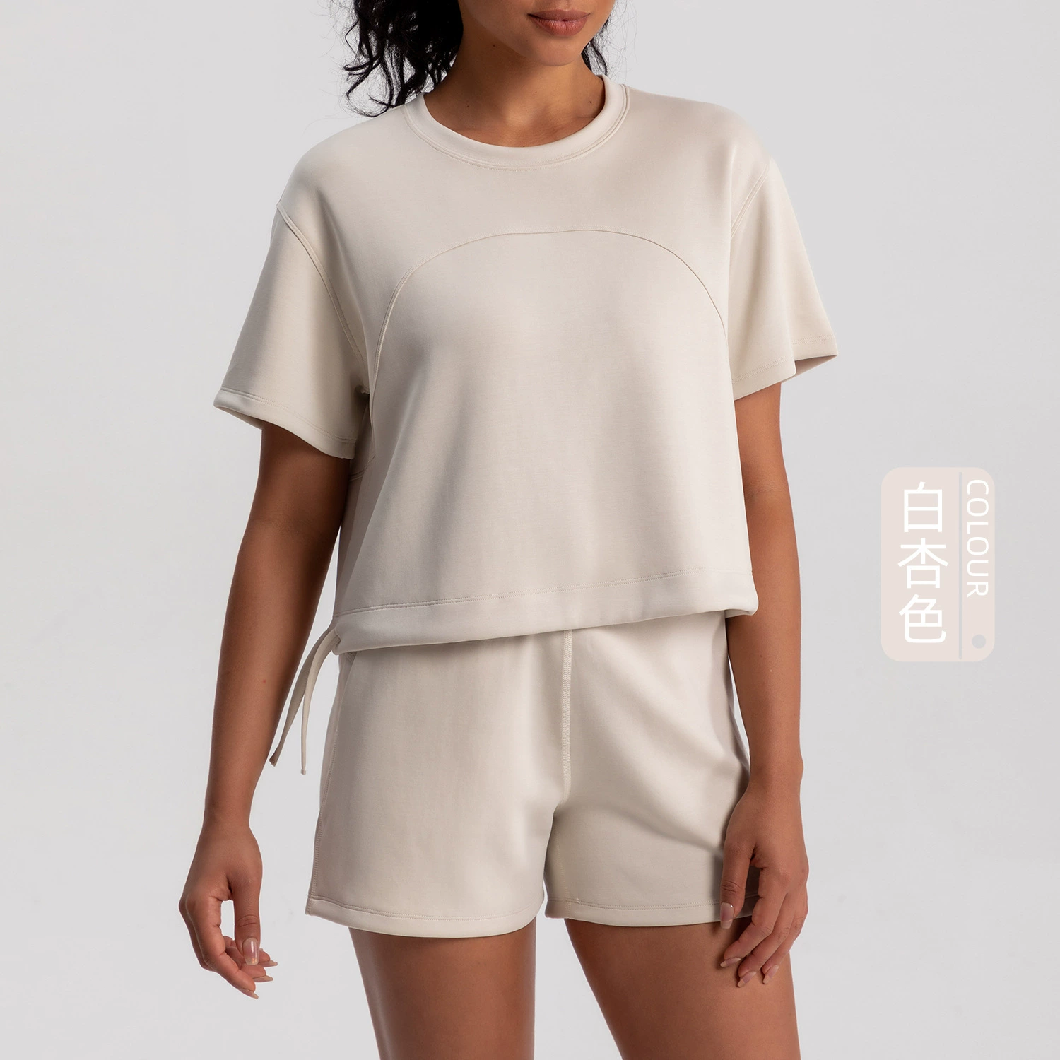 ملابس يوجا رياضية بأكمام قصيرة للنساء من Modal Sand Wash