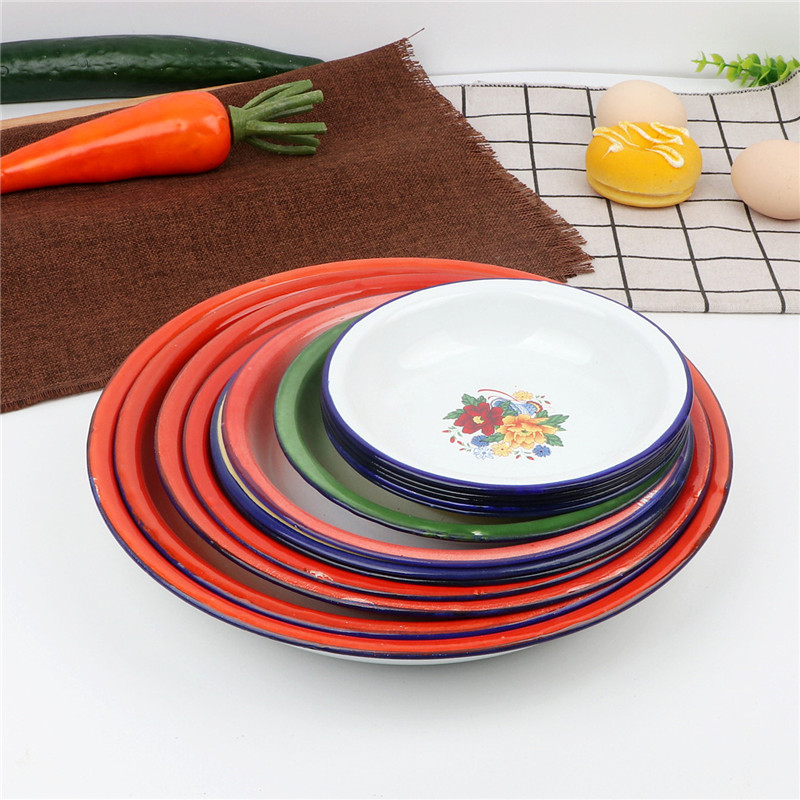 O5Z2 الكلاسيكية الحنين المينا طبق الأرز المينا القرص المينا لوحة الأرز لوحة تعميق القرص تناول طبق المينا حوض الحساء
