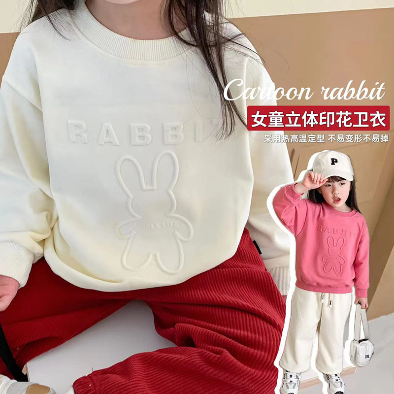 2023 الربيع والخريف الأطفال الكرتون عثرة الرقبة المستديرة الياقة المدورة سترة الفتيات كل مباراة قميص قاعدة فضفاضة طويلة الأكمام