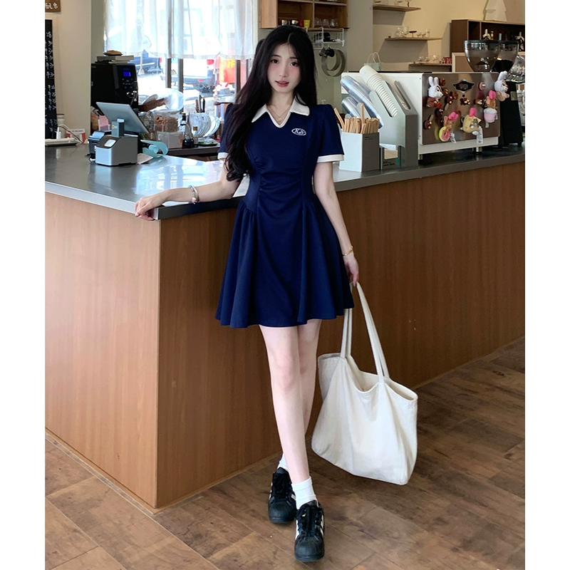 بولو متناقض اللون الصيف فتاة الدهون على شكل فستان الجسم على شكل كمثرى
