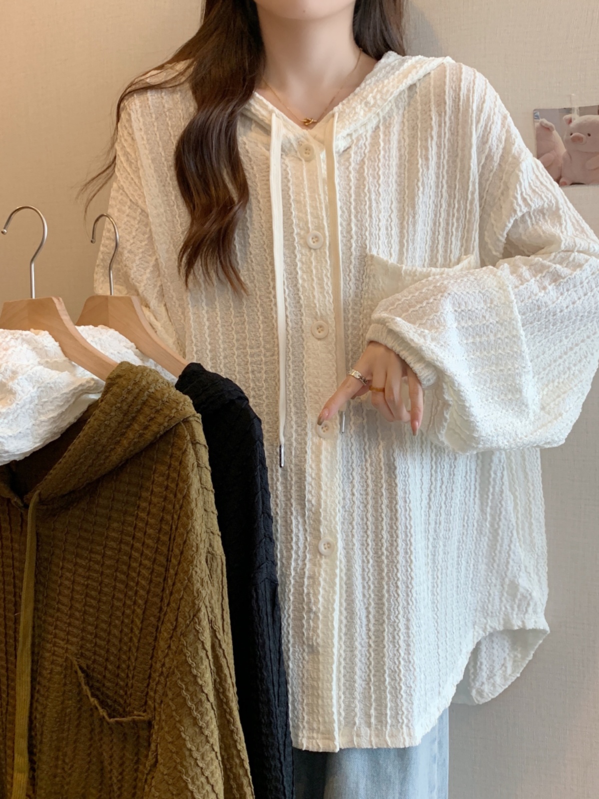 النمط الأوروبي حجم كبير المرأة مقنعين قميص طويل الأكمام الخريف فتاة السمين تغطية البطن وإخفاء اللحوم منتصف طول