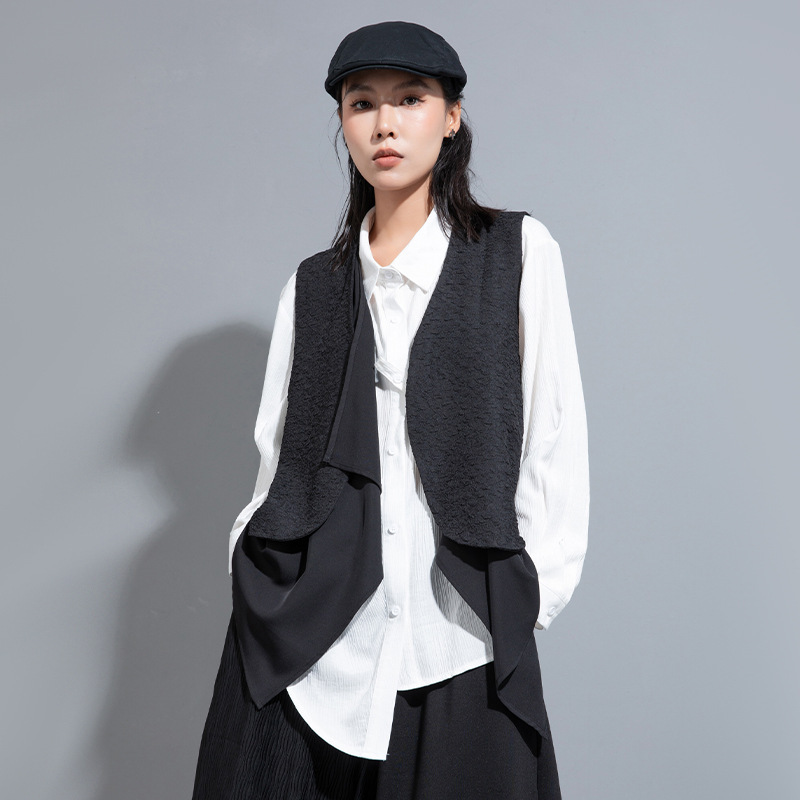 سترة سترة الربيع والخريف بلا أكمام سترة ملابس خارجية شخصية متعددة الطبقات تصميم تحسس صدرية مكدسة المرأة الجديدة وسيم