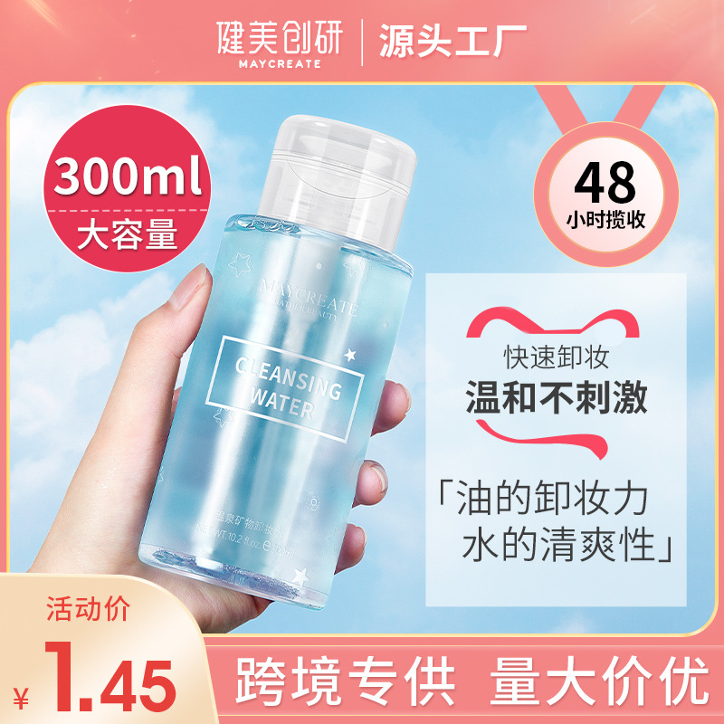 كمال الاجسام Chuangyan مزيل ماكياج جديد الضغط 300 مللي لطيف التطهير العميق مزيل ماكياج النفط هز الصوت صافي الأحمر نفس النمط