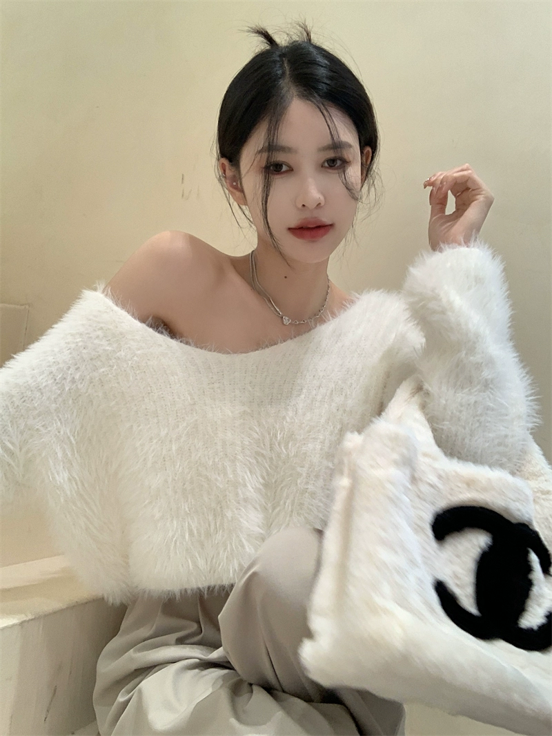 سترة قصيرة الأرجواني للنساء في الخريف والشتاء الدافئ المقلدة المنك ناعمة ناعمة الأكمام طويلة الأكمام ناعمة