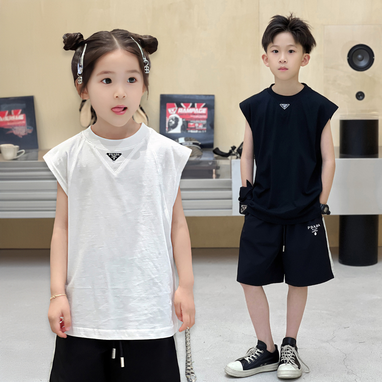 ملابس الأطفال 2024 الصيف مثلث قياسي بلون هيكل عصري خياطة صدرية للأطفال رقبة مستديرة