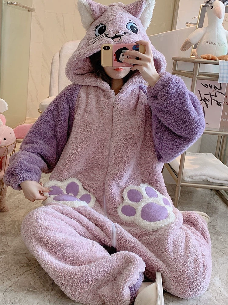 بيجامة من قطعة واحدة من المخمل المرجاني للنساء في الخريف والشتاء، ملابس منزلية شتوية لطيفة على شكل أرنب للطلاب، سميكة من الفلانيل