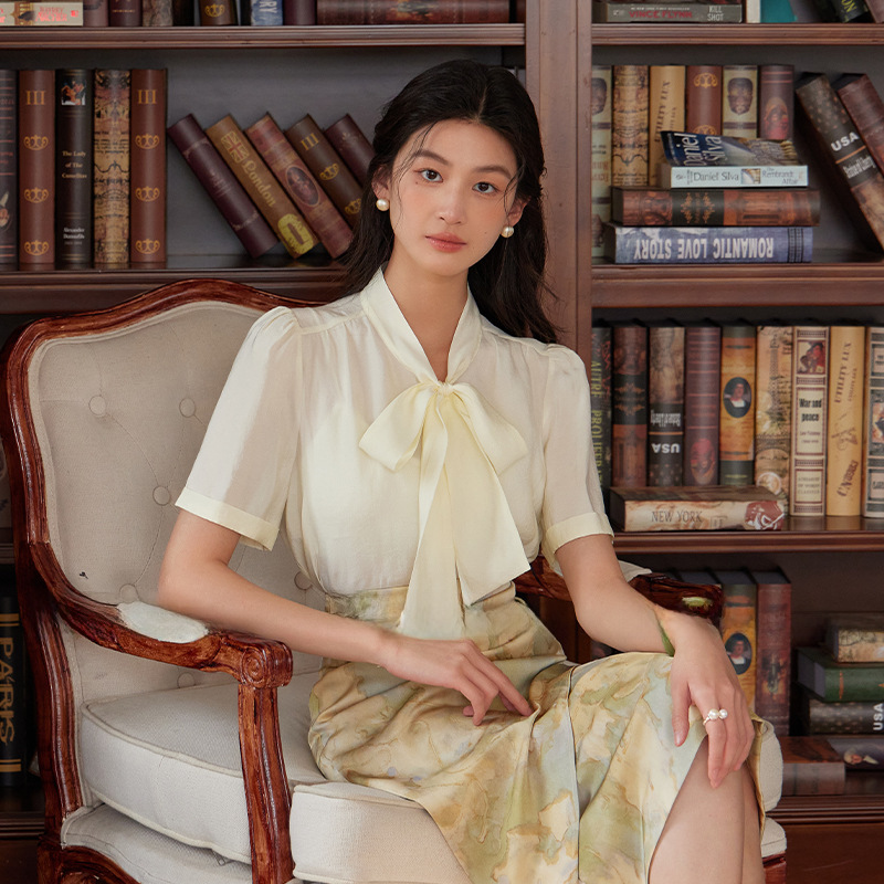حنا مع 2024 قميص جديد للمرأة القوس الصيف الراقية تصميم المتخصصة الشريط قميص H16700