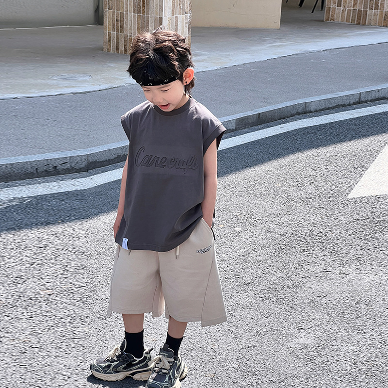 الأطفال الصيف سترة دون أكمام الفتيان قصيرة الأكمام تي شيرت صيف 2024 جديد الفتيان الصيف المقلية الشارع موضة كول توب 5