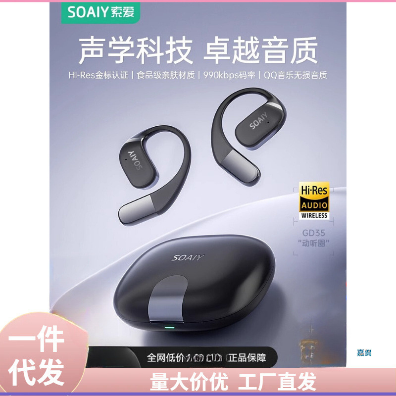 سماعة بلوتوث GD35 معلقة على الأذن 2024 جديدة غير قابلة للأذن، توصيل عظمي هوائي لاسلكي مفتوح رياضي