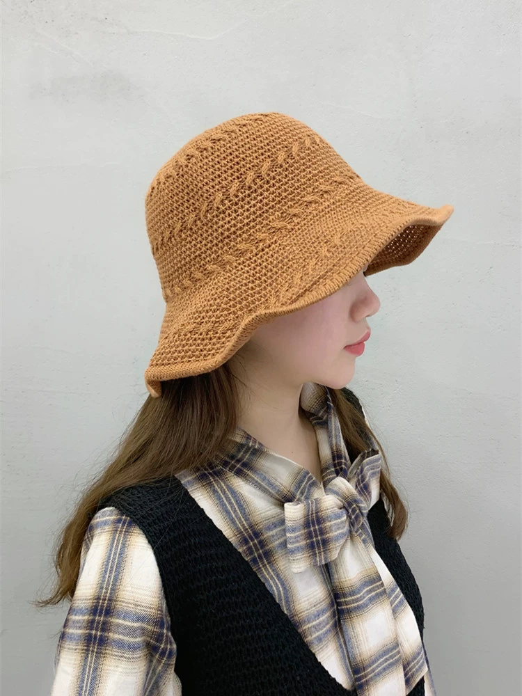 قبعة صياد السمك للنساء، النسخة الكورية للربيع والصيف، قبعة حوض مجوفة على الطراز الياباني، قبعة شمس أدبية كلاسيكية، قبعة جميلة ومتعددة الاستخدامات للحماية من الشمس