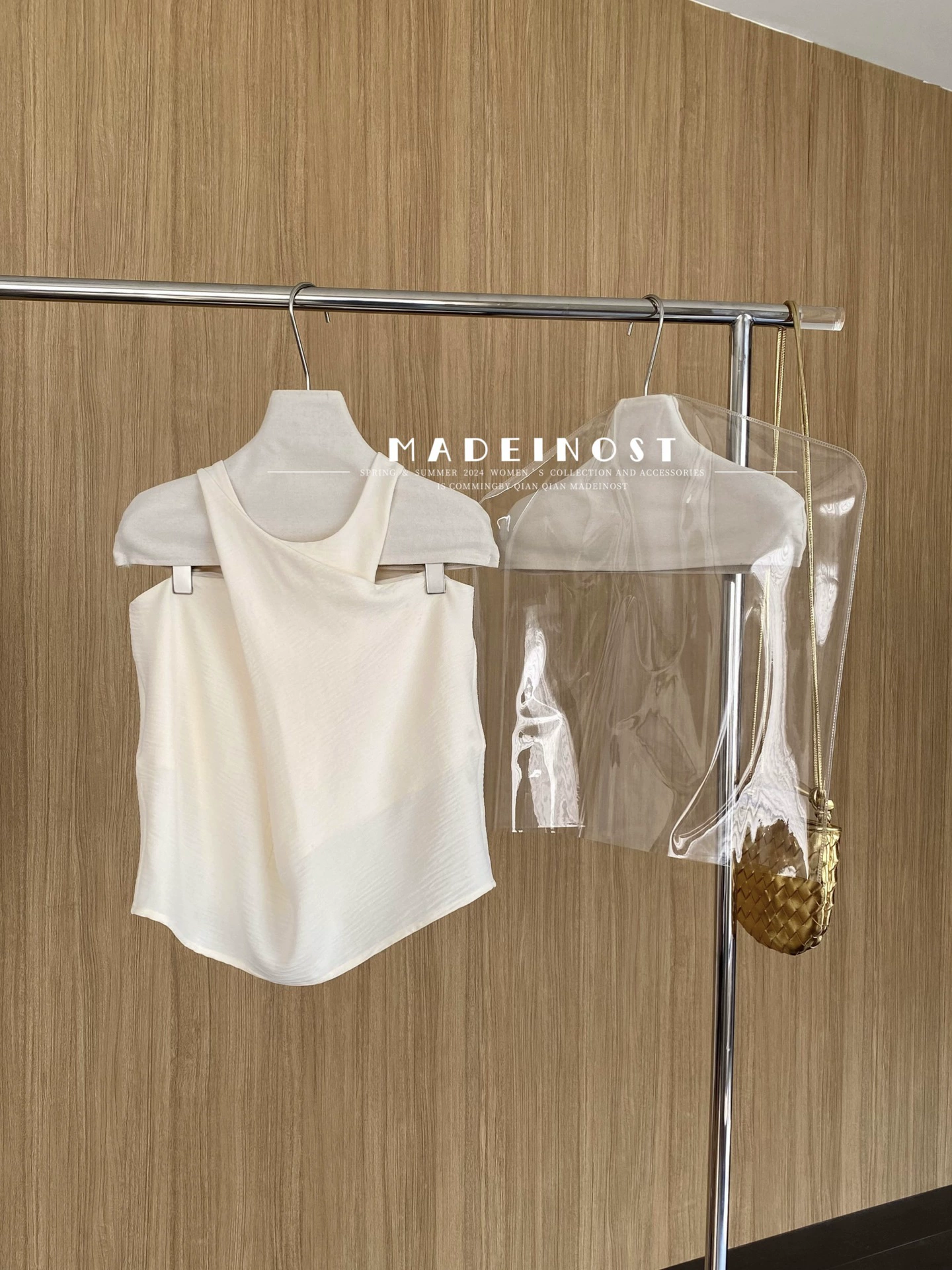 قميص قصير صيفي بدون أكمام برقبة على شكل حرف V من الحرير الجليدي