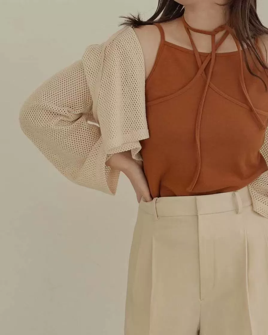 قميص داخلي بتصميم ياباني أصلي ذو لون فاتح
