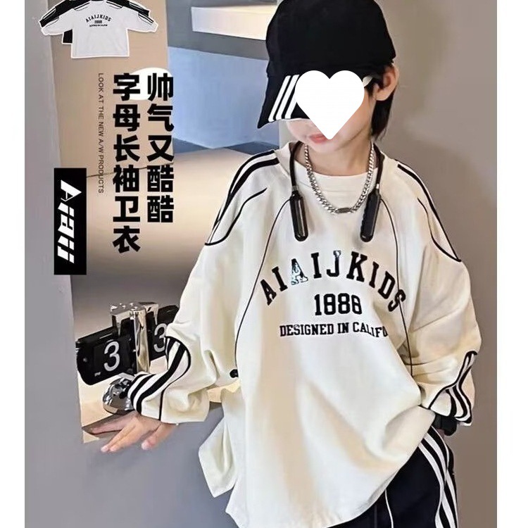 ملابس الأطفال سترة الأولاد العلامة التجارية العصرية نمط رياضي 2024 ملابس الربيع للأطفال كتلة الألوان الأبجدية أعلى الأطفال الكبيرة فضفاضة الشارع