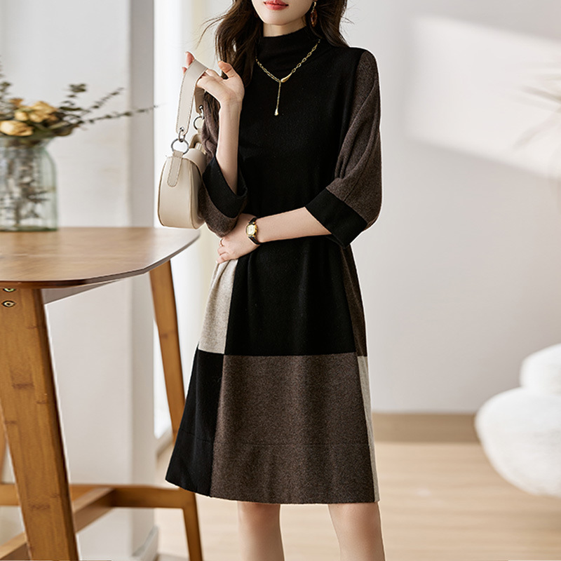 Crewneck قاعدة قميص المرأة الاحترار الداخلي 2023 الخريف والشتاء النمط الغربي أسود كم طويل تي شيرت المرأة تقليد الكشمير