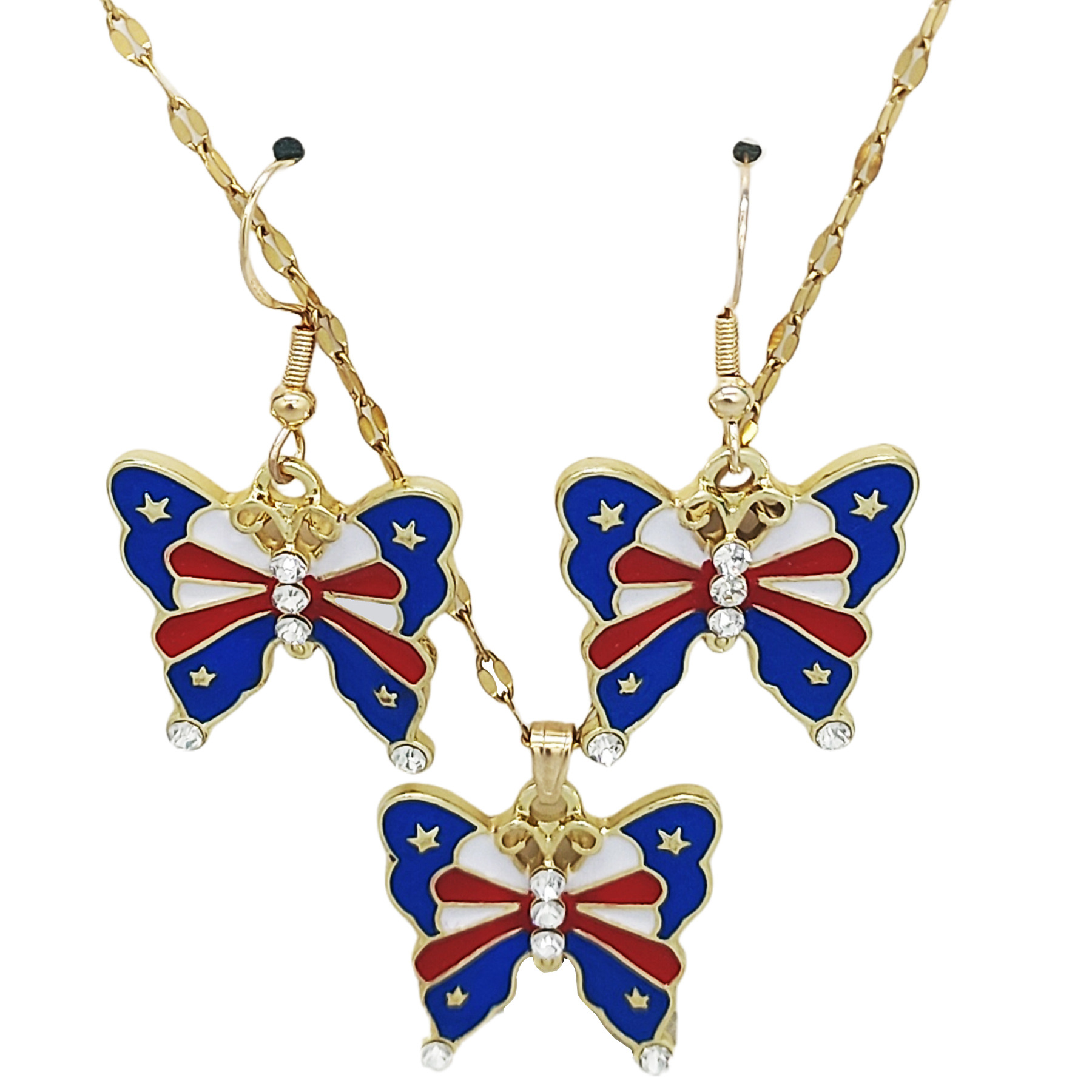عيد الاستقلال الأمريكي سبيكة دعوى الماس الأقراط قلادة الفراشة النجمة الخماسية الساخن بيع عطلة المجوهرات في الأوراق المالية بالجملة