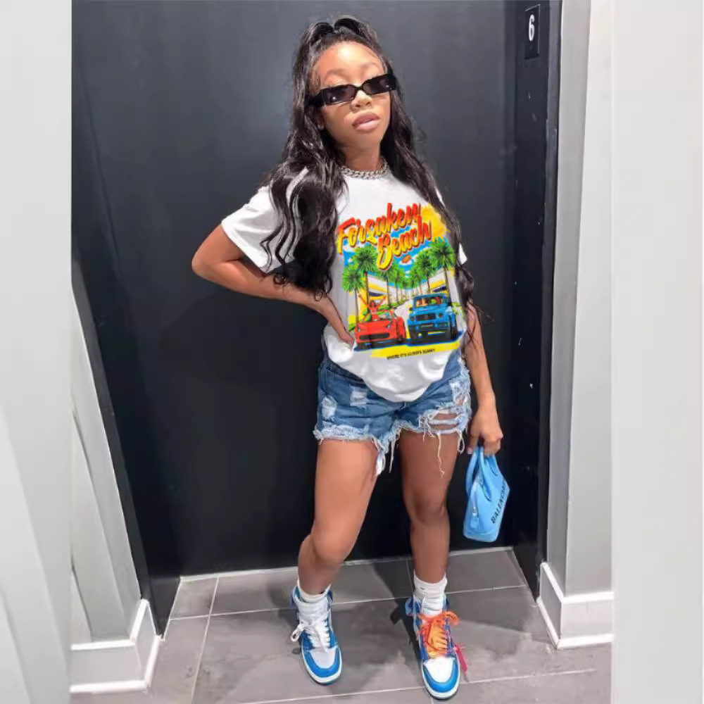 K1013 AliExpress أمازون مريح الرسوم المتحركة الأوروبية والأمريكية طباعة تي شيرت غير رسمي الملابس النسائية
