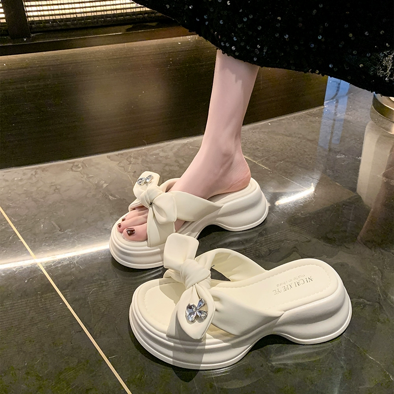 حذاء شاطئ صيفي بنمط خرافي ونعل سميك مع فيونكات