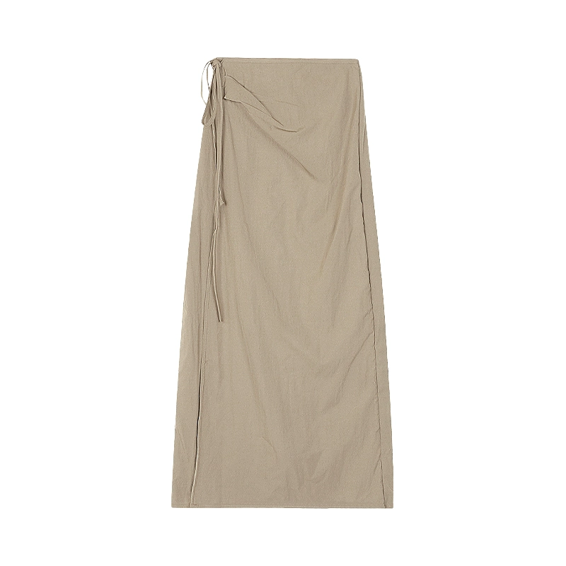 بنطلون كوري بخصر مطاطي بطول الأرض مع رباط