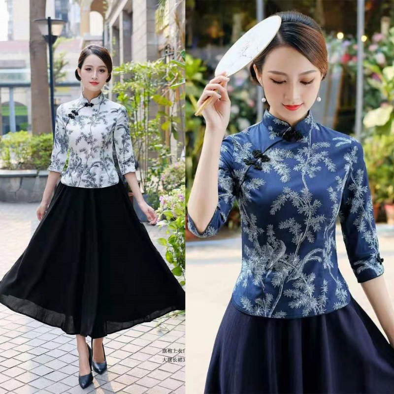 بدلة شيونغسام قصيرة تانغ بدلة هان مكونة من قطعتين أزياء يومية للربيع والصيف فستان جديد لجمهورية الصين بدلة شاي
