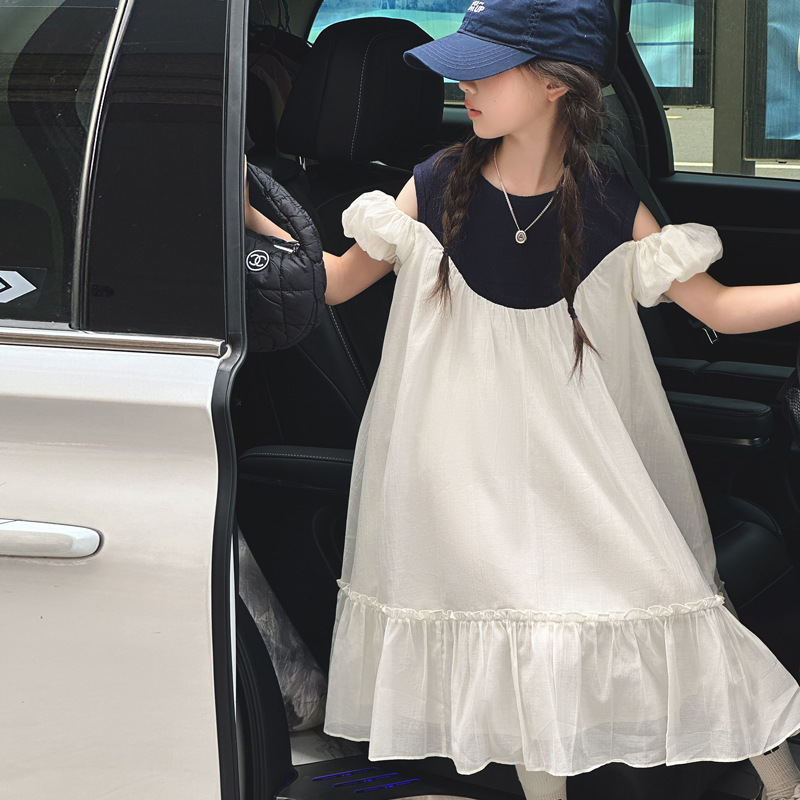 فستان الفتيات 2024 جديد الصيف الأطفال فستان صيفي كبير الفتيات الإنترنت تنورة شعبية الأطفال رقيقة النمط الغربي تنورة الأميرة