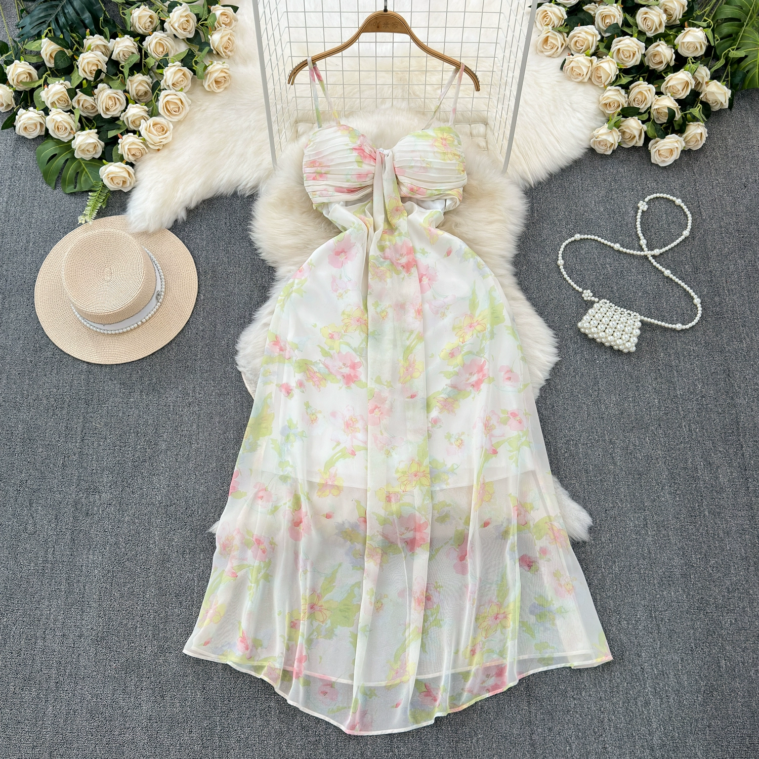 فستان نسائي بحمالات رقبة على شكل حرف V ريترو صيفي