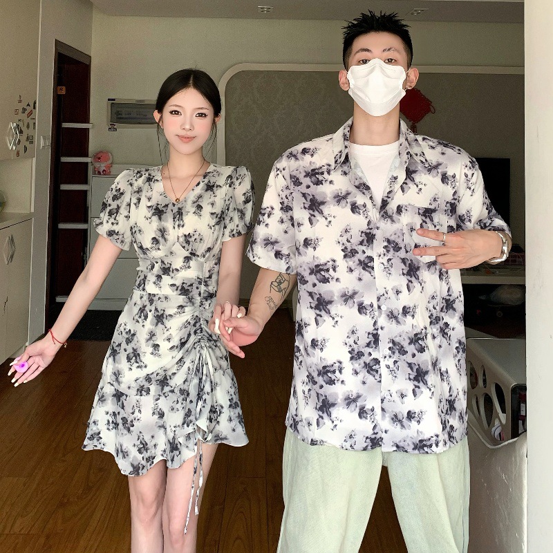 2024 الصيف قصيرة الأكمام زوجين ملابس الشاطئ فستان العطلة فستان بأكمام قصيرة فستان السفر زوجين