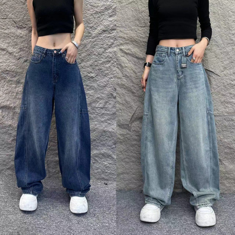 لون البحر العميق سليم عالية الخصر أبي السراويل الجينز النسائية فضفاضة أزياء كل مباراة