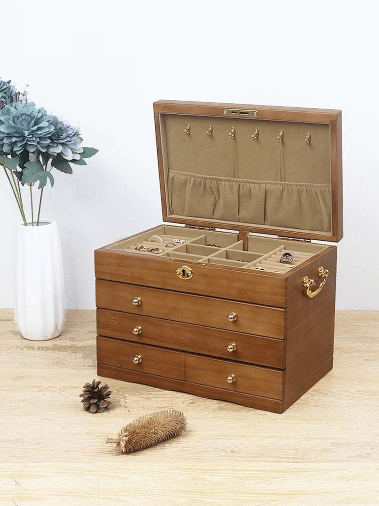 صندوق مجوهرات قديم مع قفل خشبي على الطراز الصيني، على الطراز الصيني، ذو سعة كبيرة، صندوق تخزين مجوهرات مجوهرات الجوز